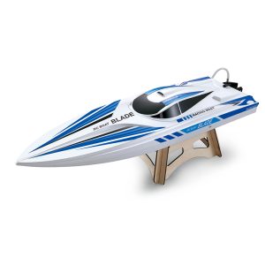 Super fast racing boat in the 400mm class. Finished (RTR) incl. Li-Ion battery, charger and battery for the transmitter. Simply charge the battery and exit at the lake! At speeds of up to 25km/h, driving pleasure is guaranteed and the travel time is up to 8 min.