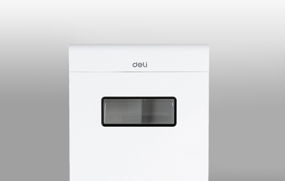 The Deli E9903-EU paper shredder cuts paper into 3x28mm strips at speeds of up to 2m/min. It is easy to use with its intuitive control panel. The built-in handle makes it easy to move. A small window allows you to quickly check how full the waste bin is. The shredder also ensures the safety of use.