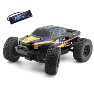 1/10 scale 4×4 monster truck model, powered by brushed motor. Including 2.4GHz transmitter and water-resistant receiver, 60A ESC and 15kg servo. Includes 7.2V NiMh 3000mah Battery and Charger. Orange bodyshell.