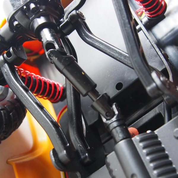 Available as an RTR (Ready-to-Run) version, everything that is required to operate the model is included in the scope of delivery – apart from standard household batteries for the remote control. The included Li-Ion battery 2S 7.4V 1200mAh enables driving times of up to 20 minutes depending on driving style and surface. Thanks to the USB charging cable with balancer connection, the D90X12 Landrover can be quickly made ready for the next trip.