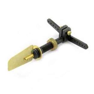 Rudder for a GPX boat with a 27x40mm paddle. The rudder has a two-sided lever, the span of which is 63,5mm.