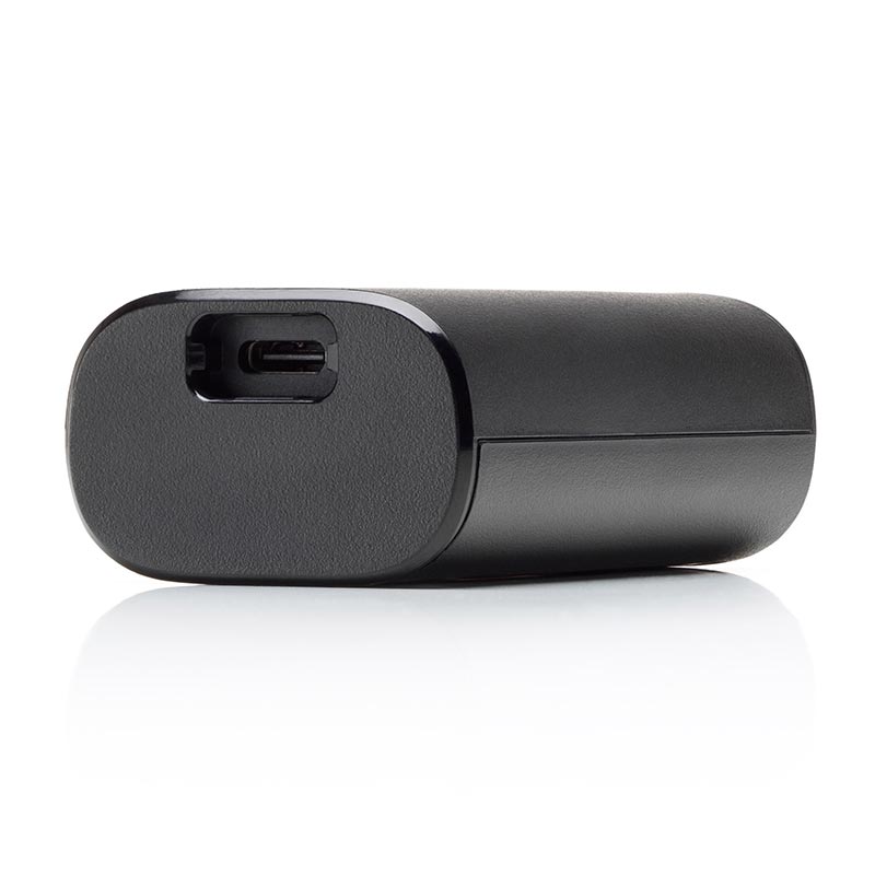 The portable DJI FPV Goggles Battery can charge the DJI FPV Goggles. It comes with a real-time battery level indicator (when being used with the DJI FPV Drone) for DJI FPV Goggles V2. When fully charged, it can provide up to 110 minutes of battery life for the DJI FPV Goggles V2.