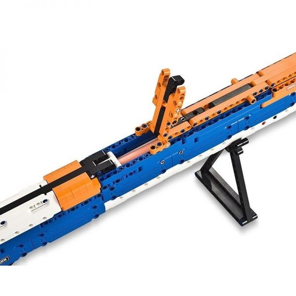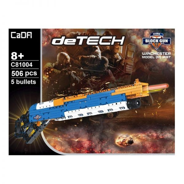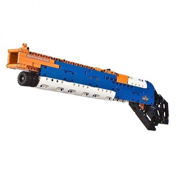 Build your own Winchester Rifle! It is a copy of the American Winchester Model 1887 pistol. The presented model of the rifle has 506 bricks for self-assembly! The rifle has the ability to fire bullets, the set includes 5 “bullets”. In order to shoot more accurately, it is possible to mount the weapon on the supporting triangle.