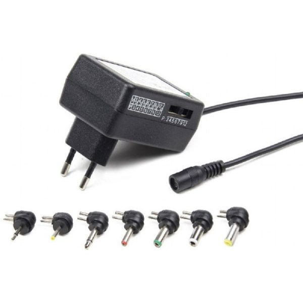 Τάση εξόδου DC: 3, 4.5, 5, 6, 7.5, 9, 12 +/- 0.1 V at 1 A max, “+” is central