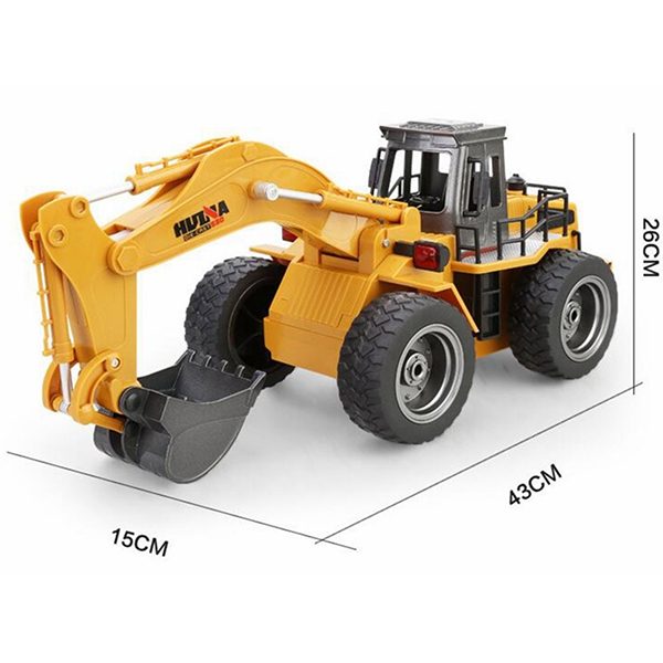 The 6-channel excavator is a perfectly reproduced remote-controlled model made with an extremely precise die cast method. Appearance and functionality reflect a real construction machine.
