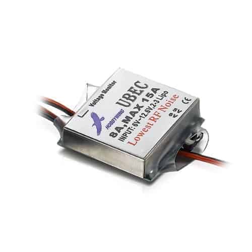 This UBEC is an external switching mode DC-DC regulator; it draws DC voltage from 2-3S LiPo battery, drops it to a voltage level that is suitable for your receivers and other electronic devices, and keeps providing the stable current output of up to 8Amp. As the UBEC has such a powerful output capability, so it’s particularly applicable for 30+ Class nitro helicopters and large fixed-wing aircraft.