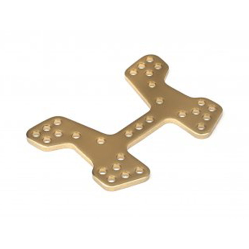 Replacement Front Shock Tower for the Maverick Strada off-road cars, excluding MT. Finished in a cool gold color anodizing.