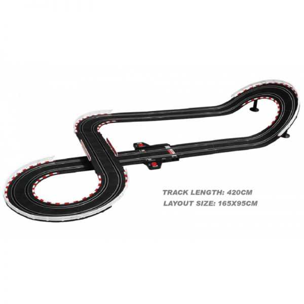 - Mega tracks, wider and longer tracks compare to traditional 1/43 scale slot racing tracks. distance between cars are more wider.