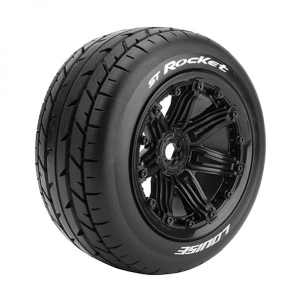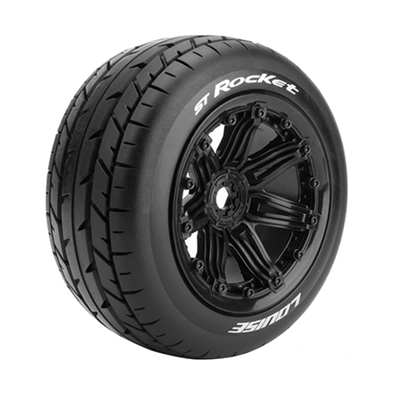 1/8 Truck tires for high perfomance trucks with 17 mm hexes like E-REVO, E-MAXX from Traxxas and Kraton, Fazon & Outcast from Arrma etc. They are mounted on sturdy black nylon 7-spoke Bead-Lock wheels for maximum security. The ST-ROCKET tires are perfect when you want to go fast on smooth asphalt, concrete and hard-packed clay!