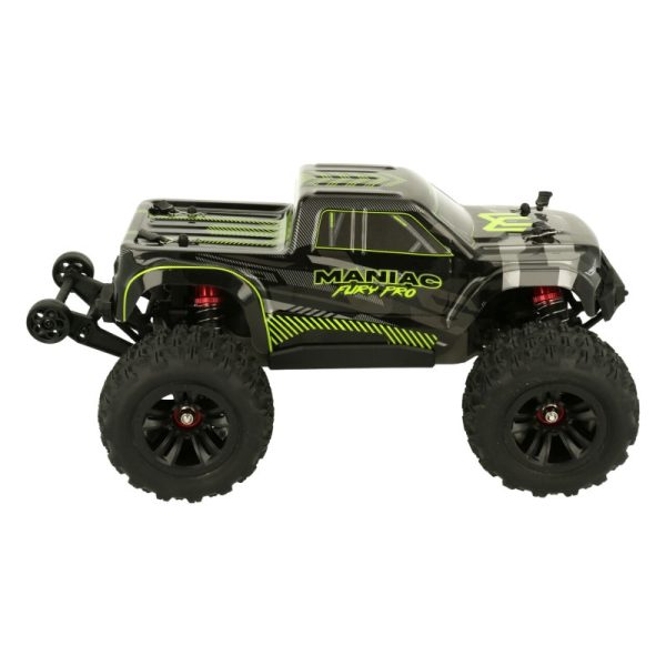 Experience boundless driving fun with the MANIAC Fury Pro Brushless Monster Truck! This powerful 1:16 scale RC truck is perfect for true off-road enthusiasts. With a breathtaking top speed of up to 45 km/h and an extremely robust honeycomb-reinforced chassis, the MANIAC Fury Pro guarantees unmatched performance on any terrain.