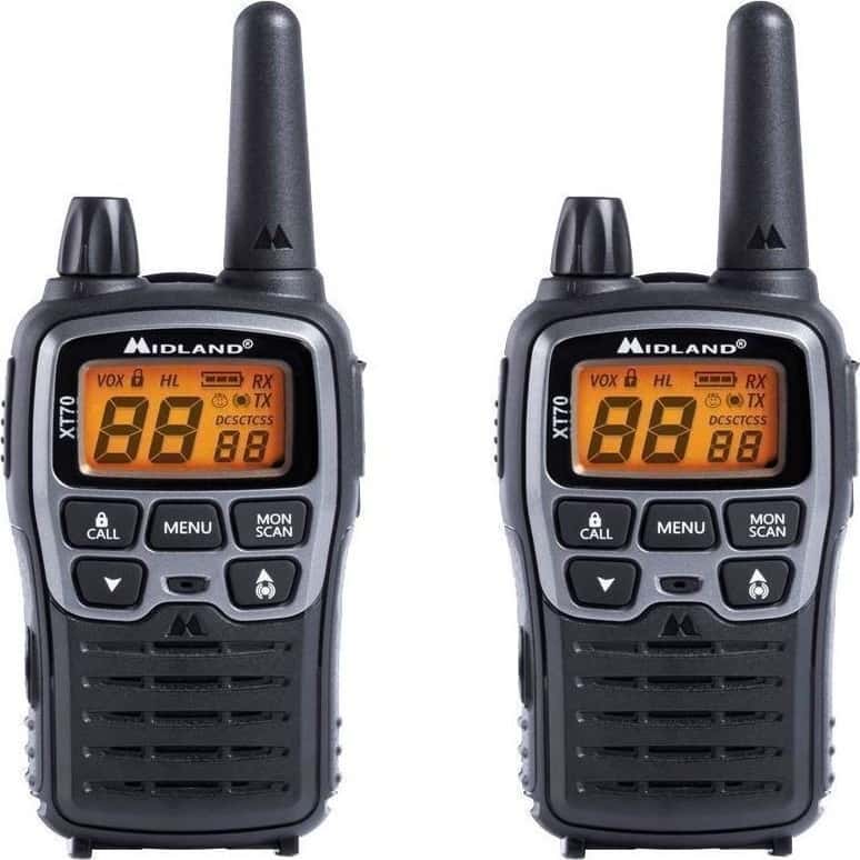 Τα Midland XT70 αποτελούν το μεγαλύτερο μοντέλο της σειράς XT με δύο μπάντες επικοινωνίας PMR446 και LPD (93 συνολικά προ-προγραμματισμένα κανάλια), μεγάλη μπαταρία 1000mAh, εμβέλεια που φτάνει τα 12km (σε ανοιχτό πεδίο) και βελτιωμένη απόδοση για να επικοινωνείτε όπου και αν βρίσκεστε.