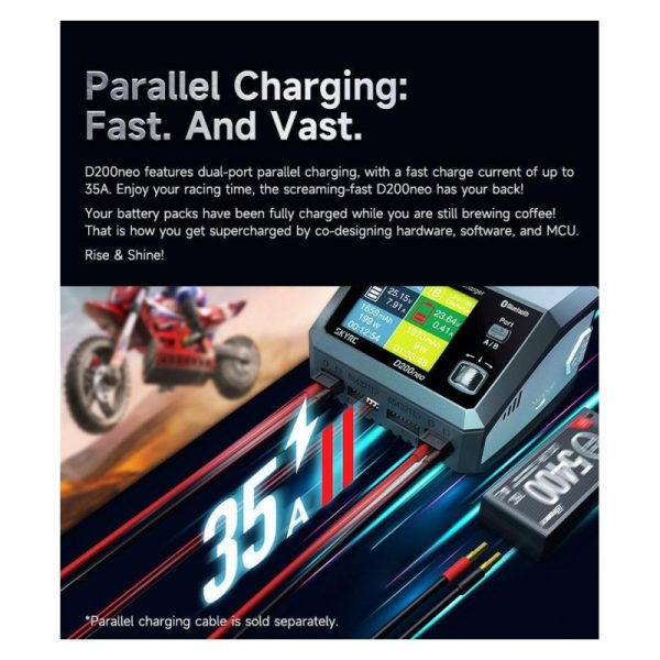 Push your next RC racing trip beyond the edge with SkyRC D200neo! The Arm Cortex®-M41 chip takes our most versatile, dual output D200neo into another dimension with a built-in DSP instruction. The chip core features a Floating Point Unit (FPU) that accelerates single precision floating point math operations and supports all ARM® single precision instructions and data types.