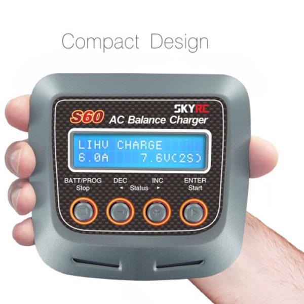 SkyRC S60 AC Professional Charger/Discharger stands out for its exquisite and stylish design. It can charge nearly all current battery types in the market, including new generation LiPo battery with end voltage 4.35V. What’s more, users could set the terminal voltage by themselves and connect it to PC for PC control and firmware upgrade. Besides that, users could also use it as Lithium Battery Meter and Battery Internal Resistance Meter. There are Automatic Charging Current Limit, Capacity Limit, Temperature Threshold and Processing Time Limit which makes the charger safe to use.