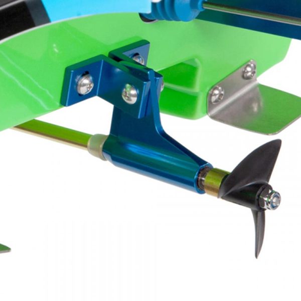 - Blue-anodized aluminum rudder support, rudder, and drive strut
