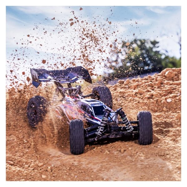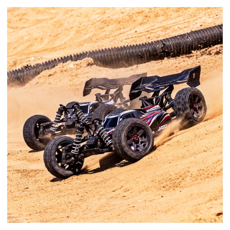 Jato 4X4 sits low and wide, concentrating its weight below the driveshafts for exceptional handling and perfect weight distribution. Extra-long GTR shocks in the front and rear maximize traction by keeping Jato 4X4’s new Sledgehammer® buggy tires in constant contact with the ground. Add the optional sway bar kit (sold separately) for ultra-flat cornering and game-changing on-track performance.