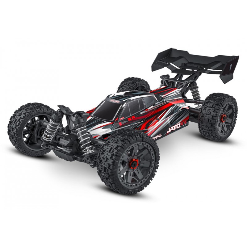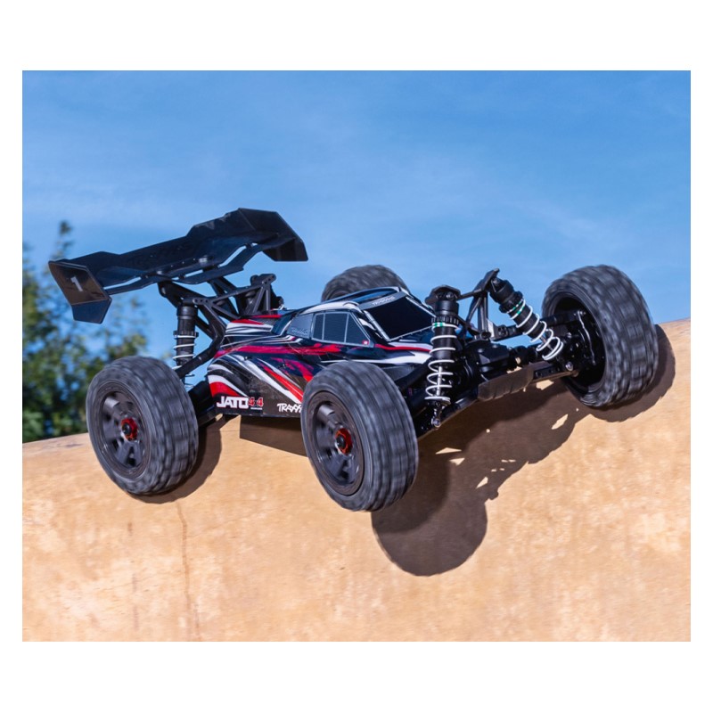 Factory-installed Extreme Heavy Duty Upgrade components give Jato 4X4 the superior strength and durability normally associated with Traxxas’ toughest off-road trucks. An ultra-rigid T-Bar reinforces the chassis with Extreme HD shock towers to support the suspension. Huge Maxx-Duty® driveshafts transfer every ounce of the motor’s torque to the wheels with unsurpassed strength.