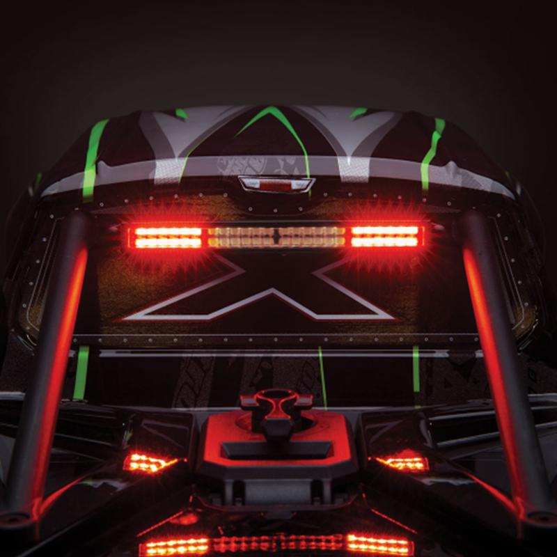 Traxxas innovation delivers features and performance not found on any other lighting system. The included high voltage amplifier packs the muscle to efficiently power both high-power light bars in the kit while minimizing losses from excessive current and heat. The tightly regulated output provides stable lighting performance, without flickering or dimming as the battery voltage changes. In another Traxxas first, the smart brake lights work when brakes are applied in both forward and reverse directions. This eliminates the common and annoying problem with generic aftermarket systems that turn on the brake lights while reversing.