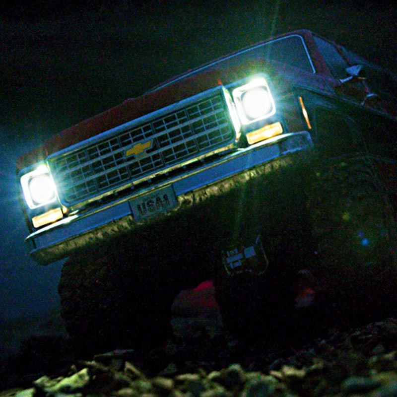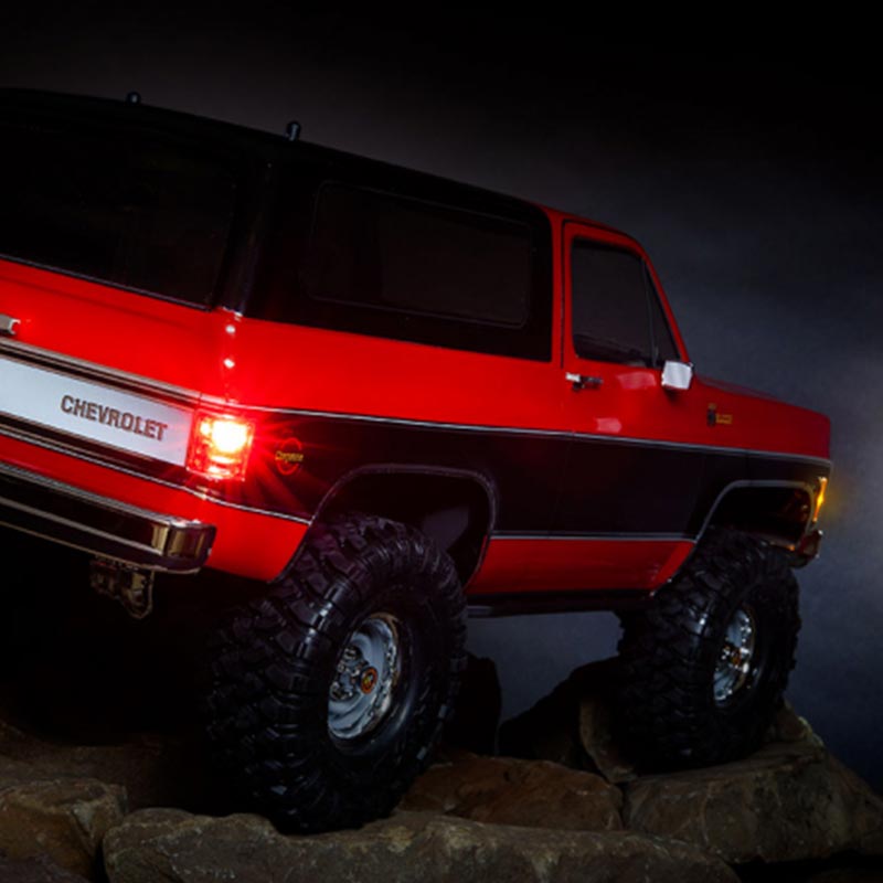 The Traxxas TRX-4 Chevrolet K5 Blazer delivers scale appearance and detail like never before. The new LED Light Kit (#8038) takes scale realism to the next level with working headlights, tail lights, and side markers. Fully waterproof and built Traxxas-Tough, the LED light kit is ready for your wildest adventures. No matter where the trail leads, day or night, the TRX-4 Chevrolet K5 Blazer will light the way.