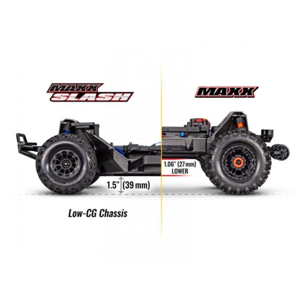 Maxx Slash punches harder and faster with brutal 6s power and 112+kph speed. Low center of gravity and new belted tires keep it all in control.