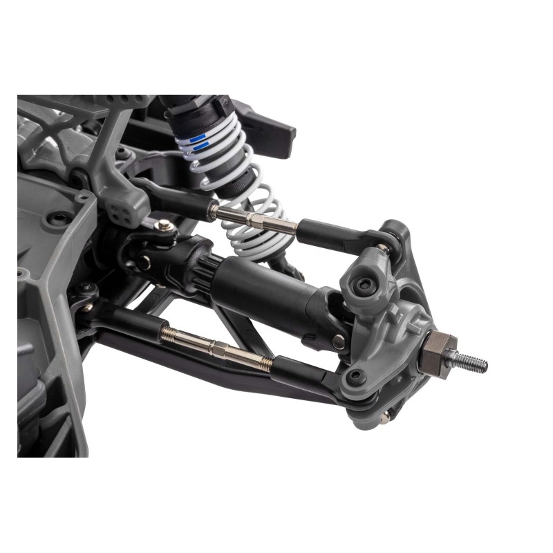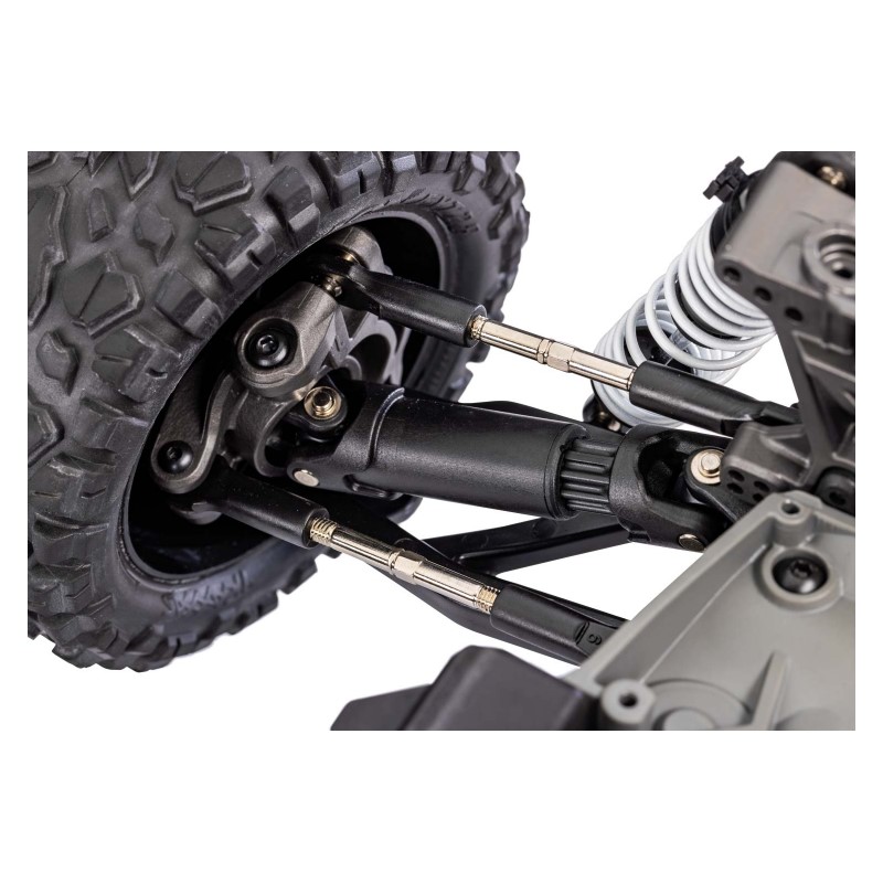 Rustler 4X4 VXL’s factory-installed Extreme Heavy Duty Upgrade Kit replaces key drivetrain and suspension components with beefed-up parts made for ultimate strength and durability. From the HD suspension arms to the steel wheel hubs, this is the strongest driveline ever offered in a Rustler.