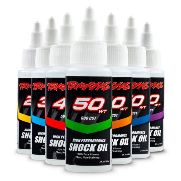 New from Traxxas is a complete line of premium silicone shock oil. Available in seven steps of viscosity, this 100% pure silicone oil allows precise vehicle suspension tuning for maximum performance, no matter where you drive. The precision-pour, twist-nozzle cap makes it quick and easy to fill shock bodies, without all the mess. cSt viscosity specification ensures consistent performance with every bottle.