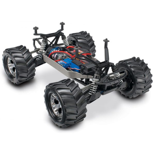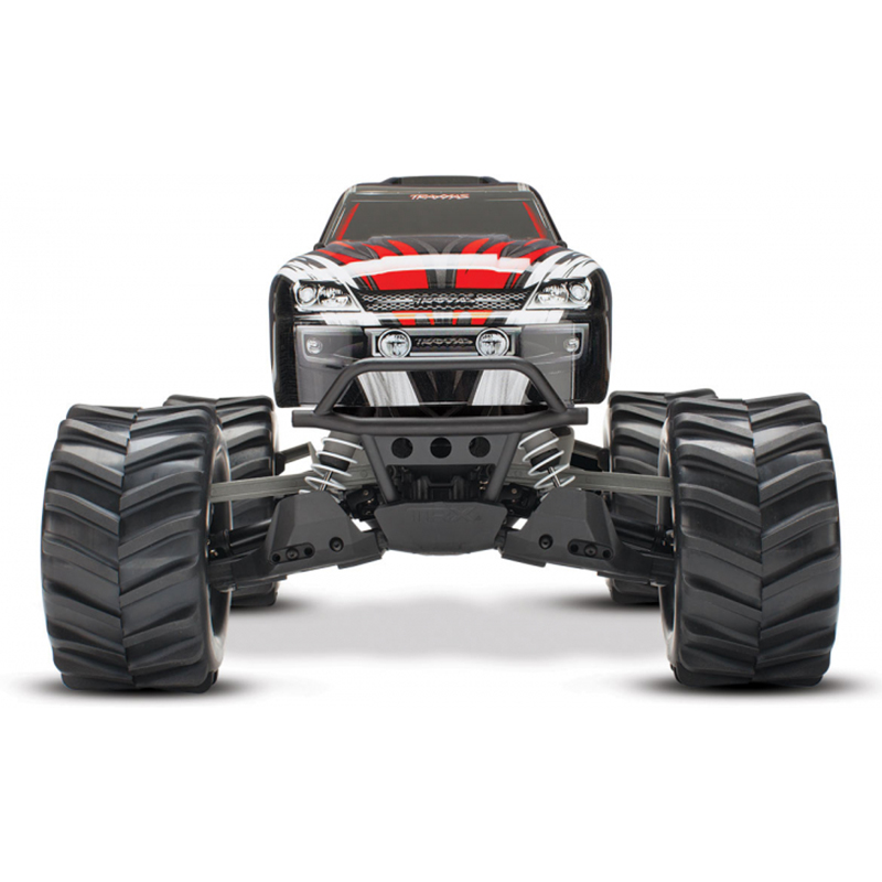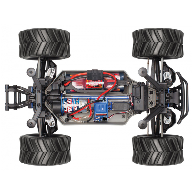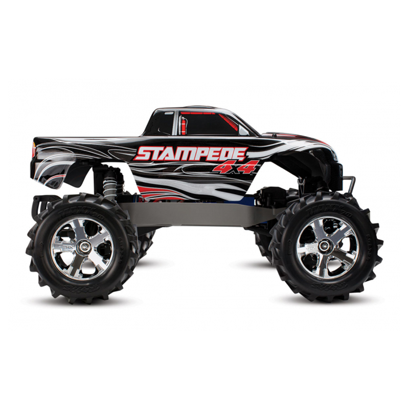 Stampede 4X4 is built on the proven performance of the advanced shaft-driven 4WD system and innovative modular design of the award-winning Slash 4X4. The chassis fully integrates the electronics and battery compartment for an efficient and compact layout, and maintains the high center ground clearance that gives Stampede its monster stance and high-riding look. The extra clearance drastically increases the off-road versatility that allows you to tackle rougher terrain and bigger obstacles. The Stampede 4X4 feels planted and secure at speed, even on pavement and in other high-grip conditions. Stampede 4X4 is 100% monster truck, but it handles like a racing machine!