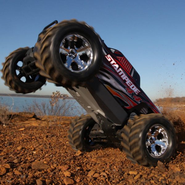 1/10 Scale Brushed High-Performance Monster Truck! Powered by Fun. Whether you’re going through muddy water crossings or just having fun crushing your buddies’ cars, the Stampede 4X4 just doesn’t know when to quit. The Stampede 4X4 is overbuilt and Traxxas Tough to withstand all the 4-wheel drive monster mayhem you can dish out.