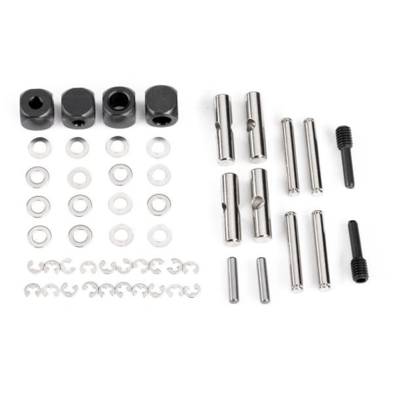 U-joints, driveshaft (carrier (4)/ 4.5mm cross pin (4)/ 3mm headed pin (4)/ 4x15mm screw pin (2)/ hex pin (2)/ e-clips (10)/ 3x6x0.5 MW (8)) (metal parts for 2 driveshafts)