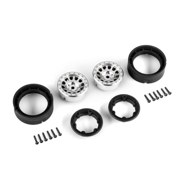 Functional Method Race Wheels® 105 beadlock wheels look great on your TRX-4M and provide maximum grip on the tire bead. Beadlock wheels work with standard TRX-4M tires and the optional 9782 Mickey Thompson® Baja Pro X® off-road tires. Add the optional 9780 brass wheel weights to give your TRX-4M even more stability for tough technical maneuvers. Includes inner and outer rims (2), center barrels (2), and mounting screws (12).