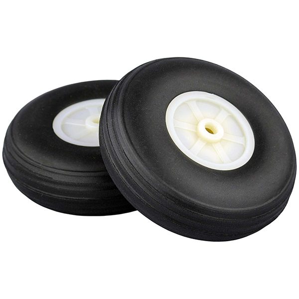 The YUKI MODEL lightweight wheels each consist of a molded plastic tire with a smooth surface, which is finished with a robust nylon rim. Due to the special foam used, the tires are particularly resistant to wear or the formation of stand plates when the wheels remain in the same position under load for a long period of time. Although the tires are relatively strong, but still have a low weight and are flexible enough to absorb even tougher shocks in rough landings well. Since it is not inflatable pneumatic tires, eliminates the associated repair and maintenance. Thus, the visually appealing lightweight wheels are also a cheaper alternative for higher-value aircraft models.